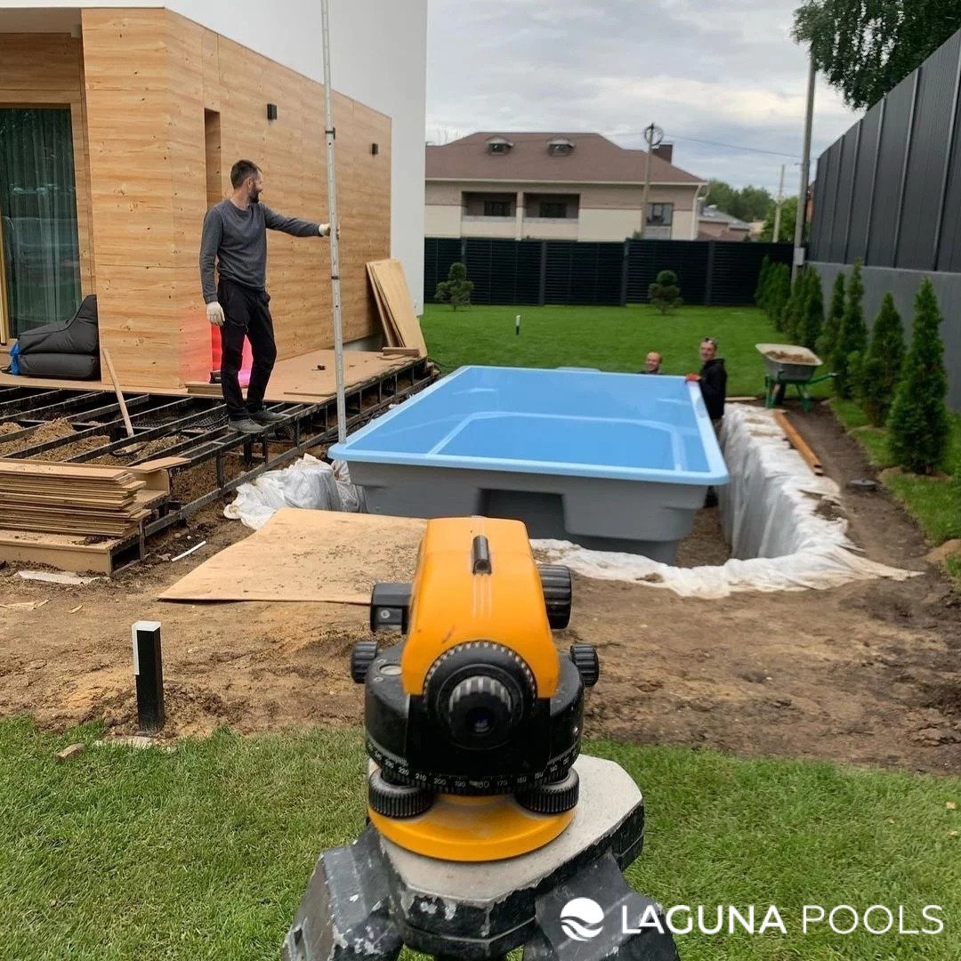 Установка композитного бассейна с использованием нивелира